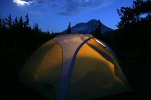 Moon over high camp, Three Sisters Wilderness, Oregon Cascades